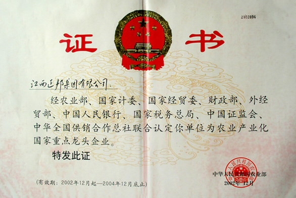 被國家九(jiu)部委認(ren)定為“農業產業化(hua)國家重點龍頭企業”。
