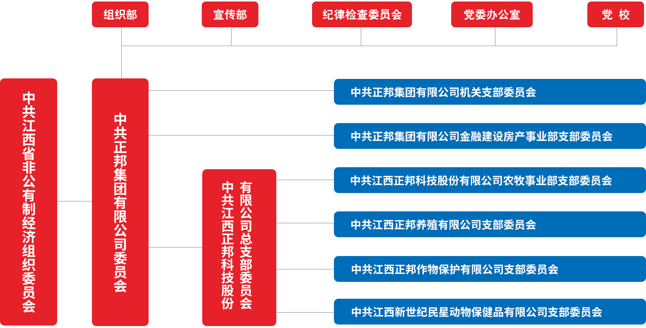中共正邦集團有(you)(you)限公(gong)司委員會成立(li)于(yu)(yu)2009年11月,隸屬(shu)于(yu)(yu)江(jiang)西省非(fei)公(gong)有(you)(you)制經濟組(zu)織黨(dang)(dang)(dang)(dang)(dang)委,是江(jiang)西第一(yi)個(ge)民營企業黨(dang)(dang)(dang)(dang)(dang)組(zu)織。正邦集團董事長、總裁林印(yin)孫擔(dan)任集團黨(dang)(dang)(dang)(dang)(dang)委書記(ji),集團現有(you)(you)黨(dang)(dang)(dang)(dang)(dang)員1623人。集團黨(dang)(dang)(dang)(dang)(dang)委按照“一(yi)方所屬(shu)、雙重管理”的模式,直屬(shu)下轄1個(ge)黨(dang)(dang)(dang)(dang)(dang)總支、6個(ge)黨(dang)(dang)(dang)(dang)(dang)支部(bu),對集團旗下分布在全(quan)國各地的各分、子公(gong)司16個(ge)黨(dang)(dang)(dang)(dang)(dang)支部(bu)實行(xing)雙重管理。