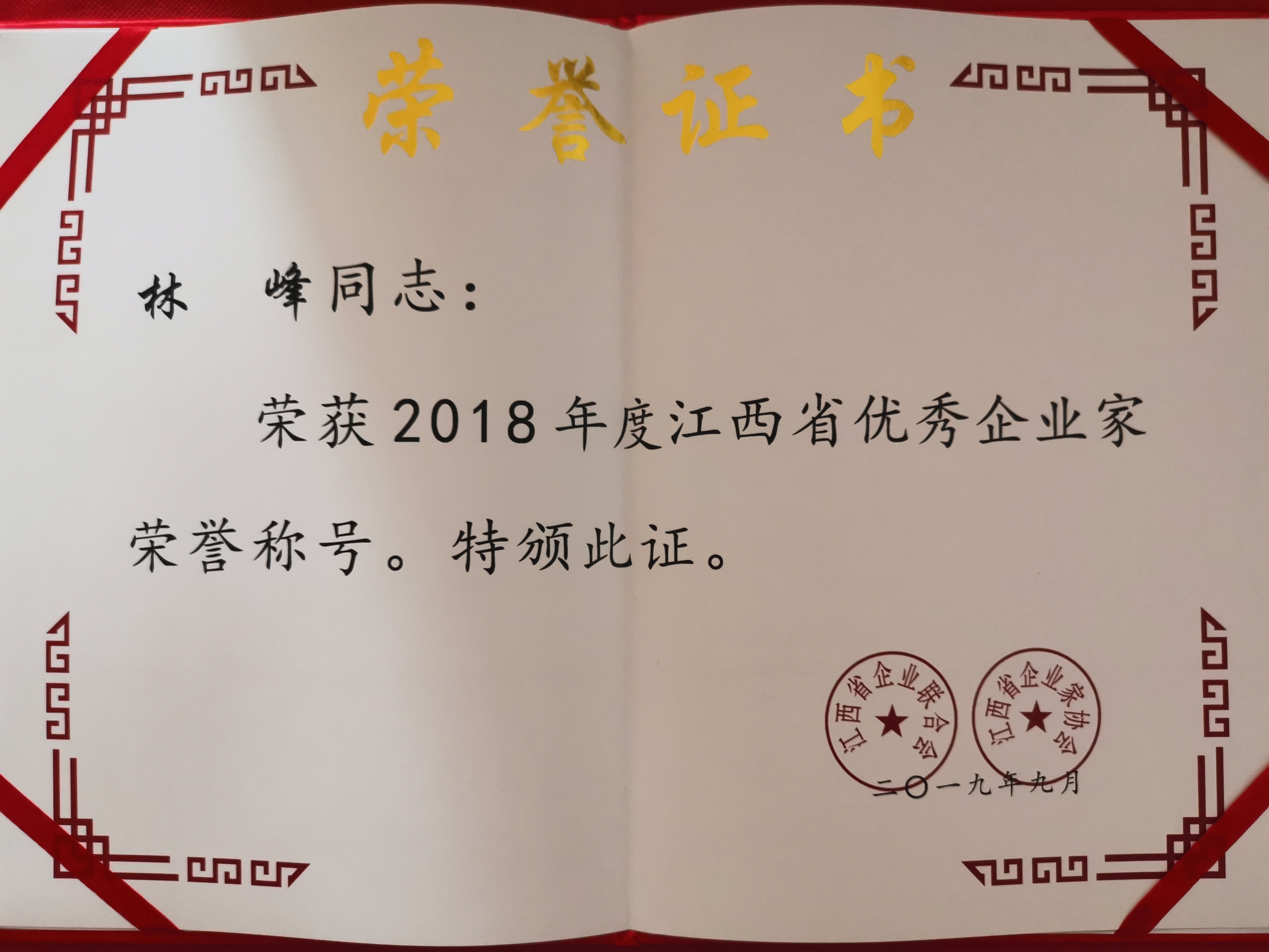 林峰2018年度(du)江(jiang)西省優秀企業家