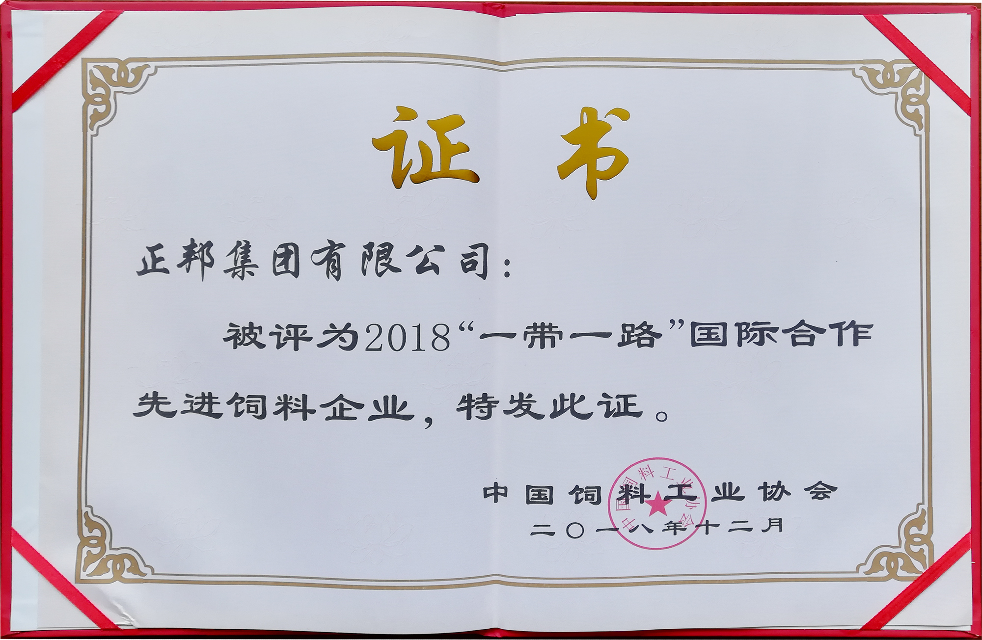 2018一帶一路(lu)國際合作先進飼(si)料(liao)企業證書